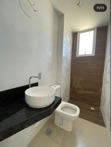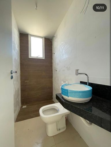 • Banheiro social com pia em granito e cuba suspensa