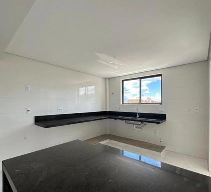 Cozinha espaçosa com bancada em granito, área de serviço separada, banheiro de empregada.