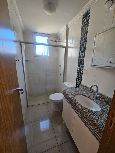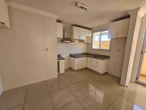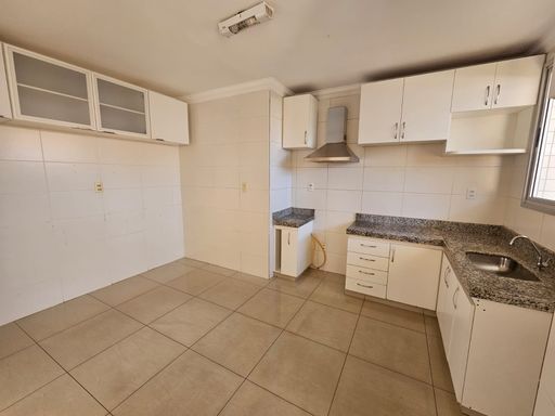 03 quartos, sendo 01 suíte, todos com armários; 01 ampla sala para 02 ambientes, com piso em porcelanato; banho social e suíte com armários e box em blindex; cozinha com armários sobre e sob bancada; área de serviço com banheiro. Ampla área privativa em U, com acesso tanto pela sala, quanto pela área de serviço.