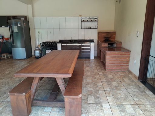 Casa constituída de 02 pavimentos, sendo o primeiro com um salão de jogos, escada em alvenaria para o segundo pavimento, sendo um salão para 02 ambientes conjugado com uma cozinha, com varanda, 03qts amplos sendo um com suíte closet e varanda com vista exuberante. Nos fundos área gourmet com fogão de lenha, forno, churrasqueira, e uma suíte, área de lavanderia, e piscina.