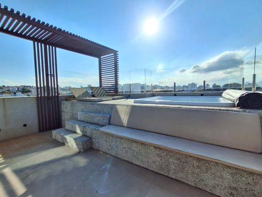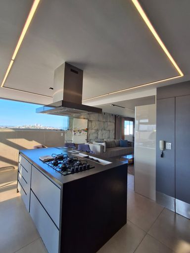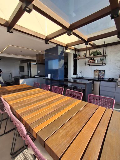 Amplo terraço gourmet com SPA, ducha e cozinha montada;