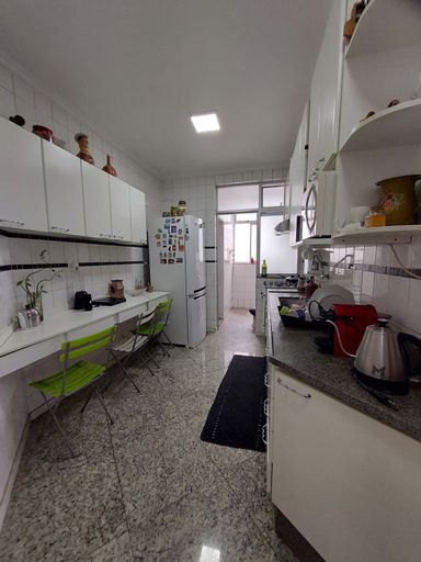 1° nível: sala ampla para 2 ambientes, ótima iluminação natural; cozinha com armários e despensa; área de serviço; banho social; 1 suíte com armário, quarto transformado em escritório.